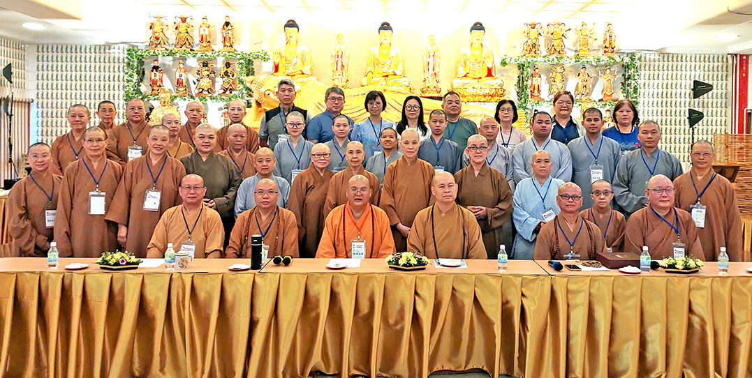 在移交印信仪式中,会长性守法师把印章移交给明吉法师,并由性尚大和尚见证。
