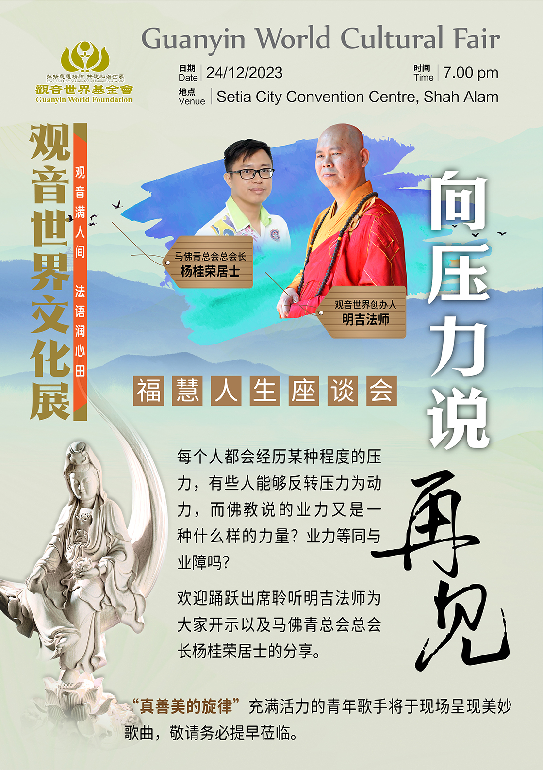 欢迎踊跃出席聆听明吉法师为大家开示以及马佛青总会总会长杨桂荣居士的分享。
