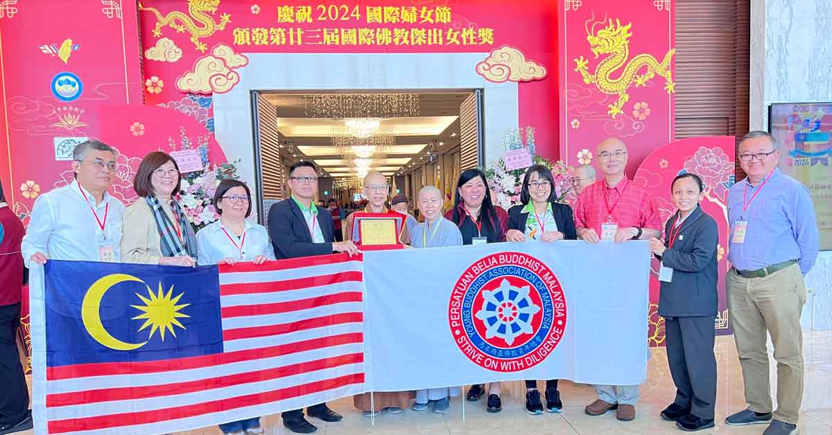 在此恭贺鹤鸣禅寺住持兼莎阿南佛学会宗教导师传闻法师,在2024年3月8日《联合国妇女节》荣获国际佛教杰出女性奖(OWBA)。