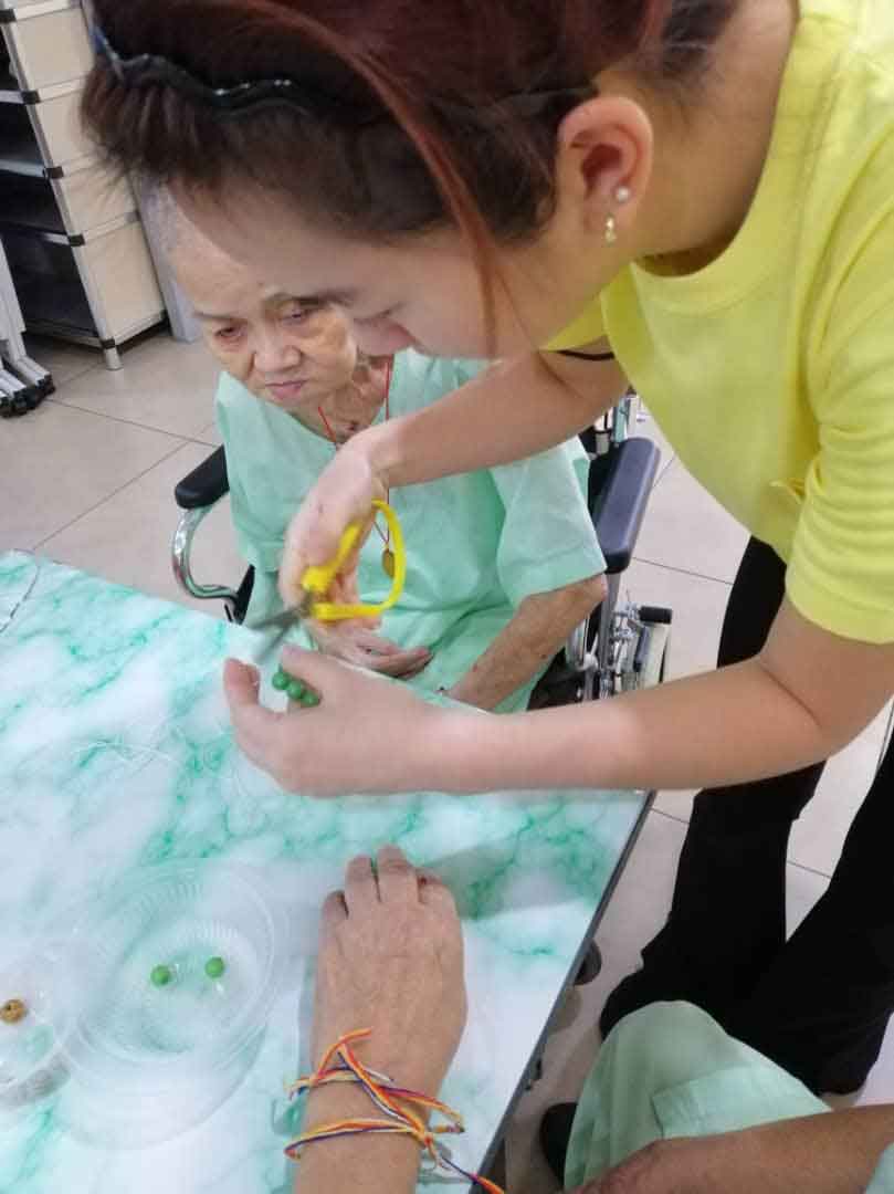 如此细心串珠子,同时 测试了中风中心院友们的执行能力和耐心,即使看似简单,对他们来说是个挑战。