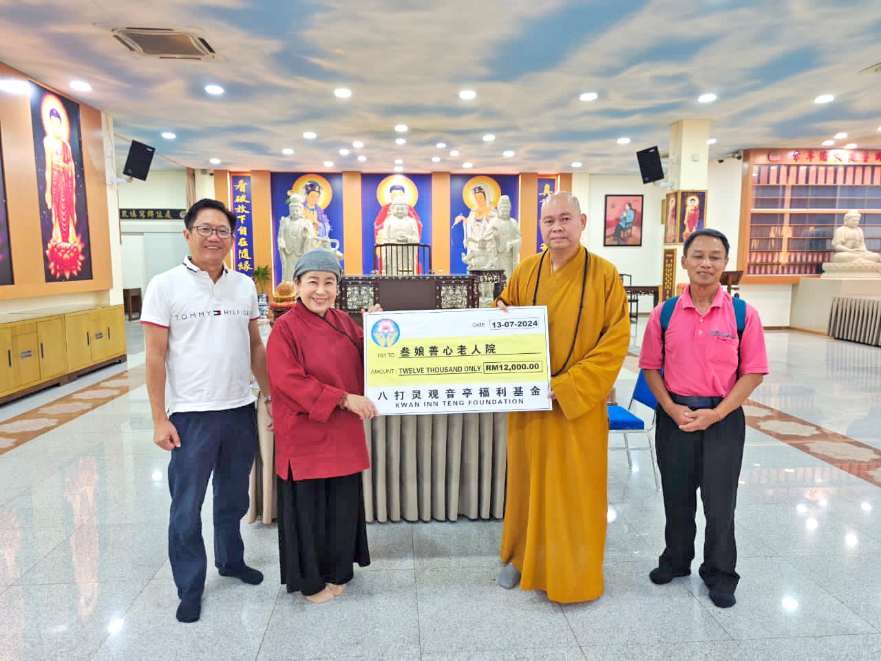 八打灵观音亭住持明吉法师移交由八打灵观音亭福利基金所捐献的1万2千令吉善款予叁娘善心老人院,由院长叶玉梅居士接领。