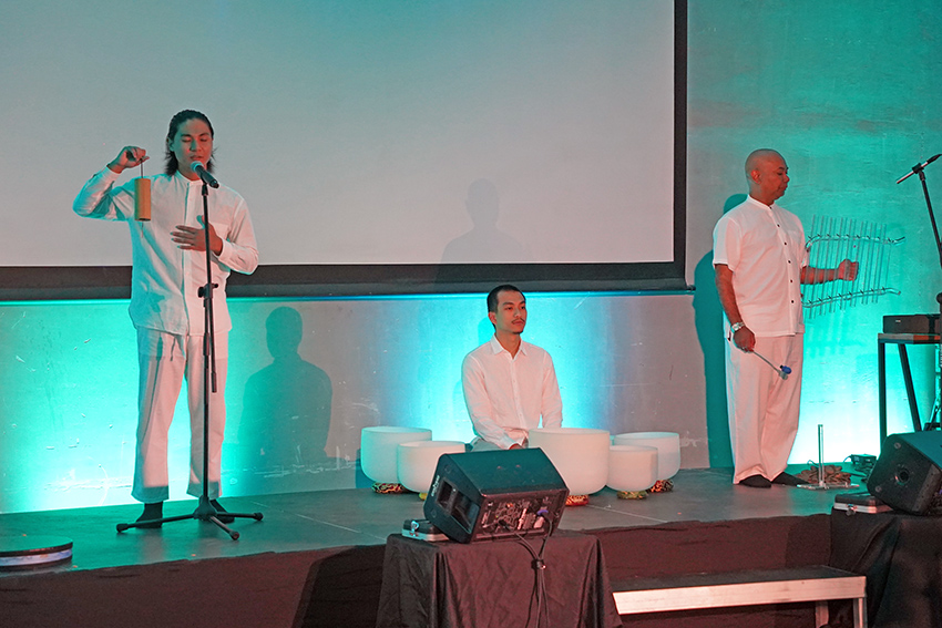真空生妙有。举办《金刚经》共读会的菩萨,以一个实有的场地,让有心要学习的有缘人有机缘来一起学习,分享法的喜悦。一场有声有色的身心灵文化嚮宴就此展开了,会上邀请JMD Wellness 的Syed Muhammad Gadaffi 以语音引导大家放松身心,颂钵空灵的音声弥漫整个空间,灌入耳里洗涤了疲惫的身心,当下,身心灵空旷欢喜。