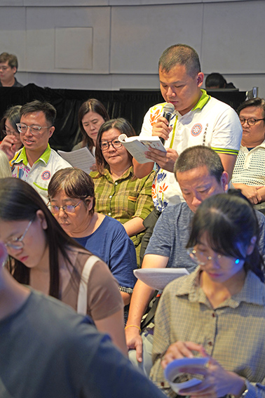 《金刚经》共读会邀请2位嘉宾:骆荣富与傅承得分享他们的心得,再加上林卿柔声线柔美地朗诵段落,带动了现场观众跃跃欲试,轮流选读自己最有感的字句参与朗诵,一时间整个空间回响着法的流动。