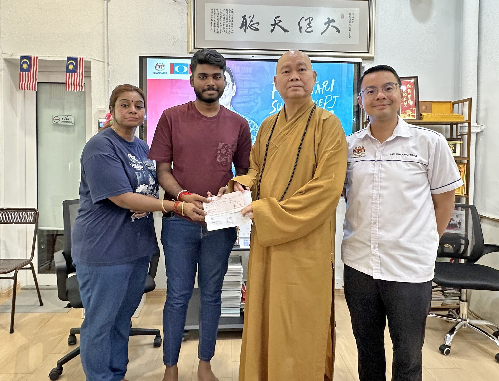 为帮助弱势学生,八打灵再也国会服务中心与八打灵观音亭福利基金会(Yayasan Kwan Inn Teng)携手合作,基金会慷慨捐出共7,600令吉,援助4户来自八打灵再也的低收入家庭,协助他们缴付大学注册费及学业开销。