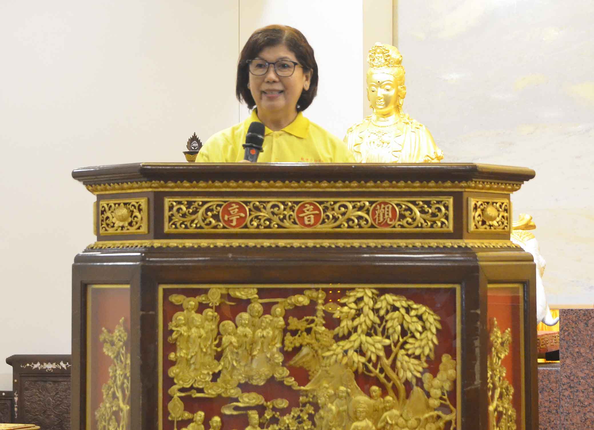 儿童佛学班主任钟爱华老师于会上致词时说到,八打灵观音亭是正信佛教道场,儿童佛学班的课程是依循正信佛法内涵教学,以生活化的方式引导孩子们轻松学习,配合举办各类主题生活营与活动,让同学们在不同的游戏中学习,同时也定期请顾问法师开示,带领学生参与课诵经典,学习佛门礼仪,体现解行并重的行仪。