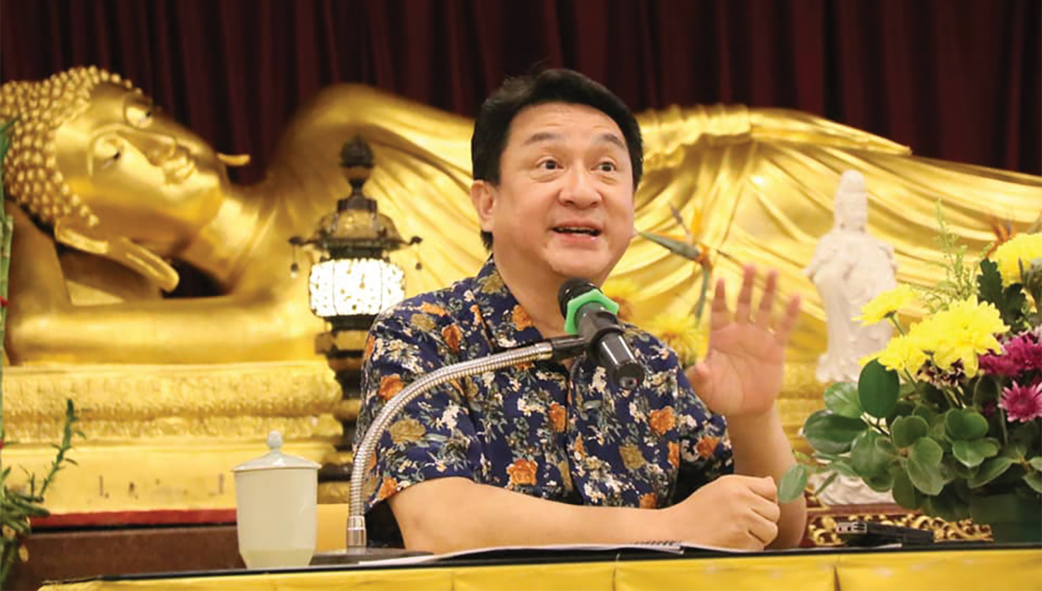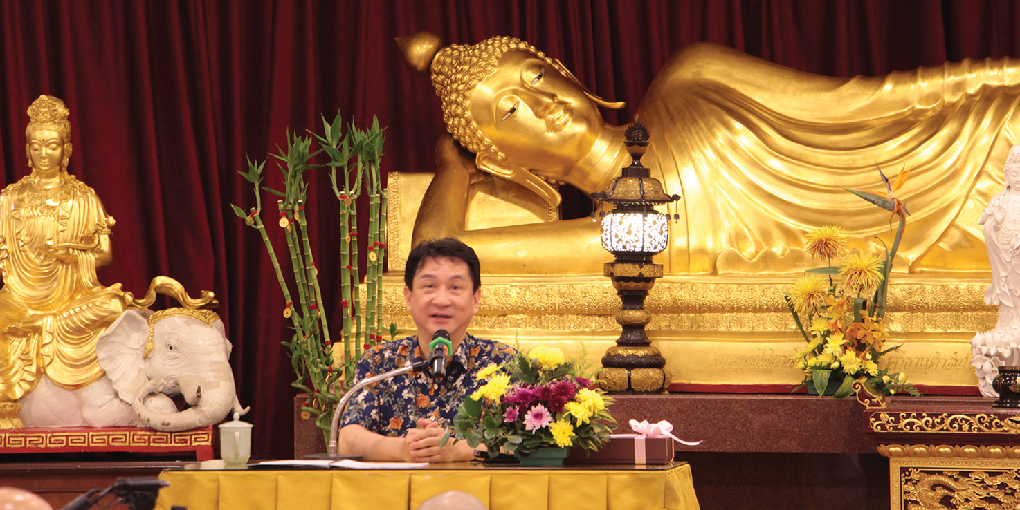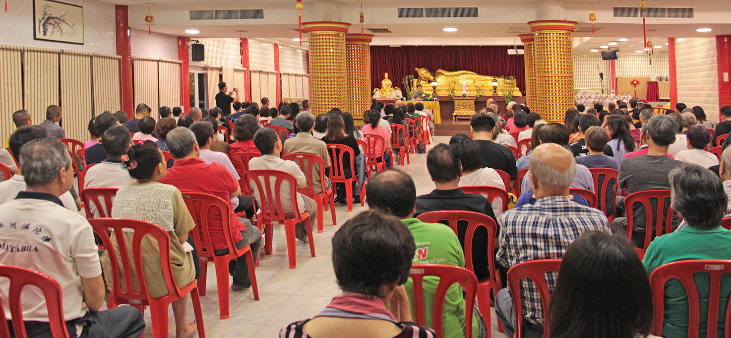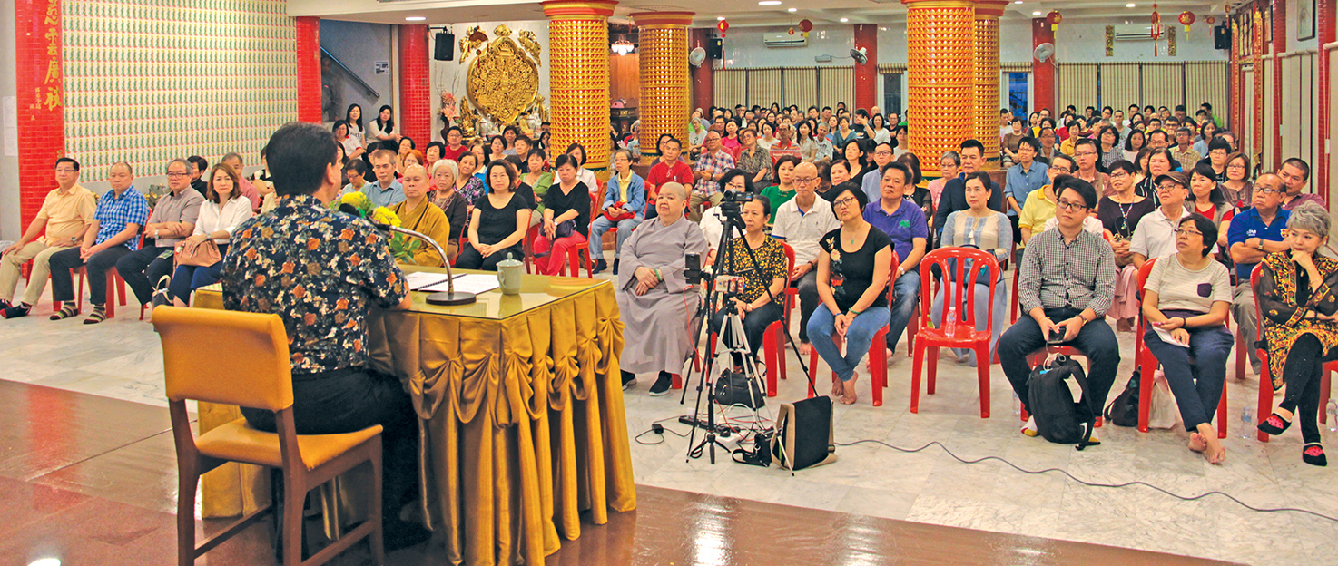 “学佛哪里是一年、二年、三年、十年----,而是尽形寿皈依三宝,以身心实践佛走过的道路。佛在哪里?在你愿意以观世音菩萨的寻声救苦;做观世音菩萨的入室弟子,那一刻,即心即佛。”因为观音菩萨与娑婆世界的众生最有缘,甘国卫笑说因缘太巧妙了,让他在八打灵观音亭,一间创办50余年来主修观音法门的道场;来开讲《觀世音菩薩圓滿的慈悲智慧》,一切都是最好的安排。