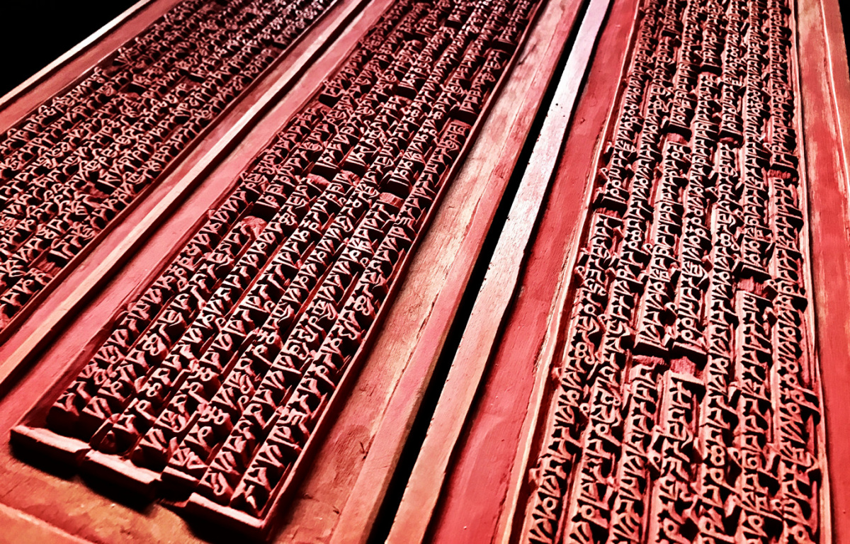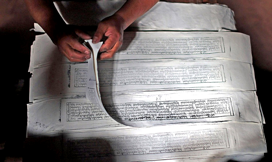 早在1703年,德格土司就已出资雕刻经板、印刷经书了,每年用藏纸约50万张,除1958年至1979年间中断了20年外,印经历史接近300年。德格印经院许多经文和画像的用纸,是德格印经院用传统手工方法自制出来的。造纸原料十分独特,是一种叫“阿胶如交”的藏药材——瑞香狼毒草的根须,含微毒。制作技艺属于浇纸法系统,独具特色。制成的德格纸,色微黄,较粗较厚,吸墨性能好,重量轻,久藏不坏,韧性好,不易碎,还可防虫蛀、鼠啮。德格印经院的经版选用红桦木为原材料,微火烤脱水后在畜粪堆沤数月,再取出水煮,烘干,刨平,然后才能在上面雕刻文字或画图。印经院的经版文字雕刻很深,而且书法十分优美,适合反复印刷,在印制中形成了许多独特的技艺。