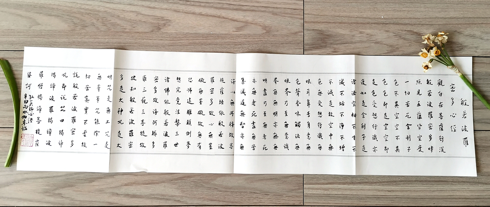 北宋(968年)开雕《开宝大藏经》以前的1000多年,单行本佛经及约7000卷大藏经都是以精美书法的手写本流通。书写佛经蔚为风尚的时光长达1000多年。以后虽然印刷业发达,但书写佛经仍因修福、供养而流传不绝,直至今日。现代高僧弘一法师以书法艺术书写佛经,现已发现的就有27种。