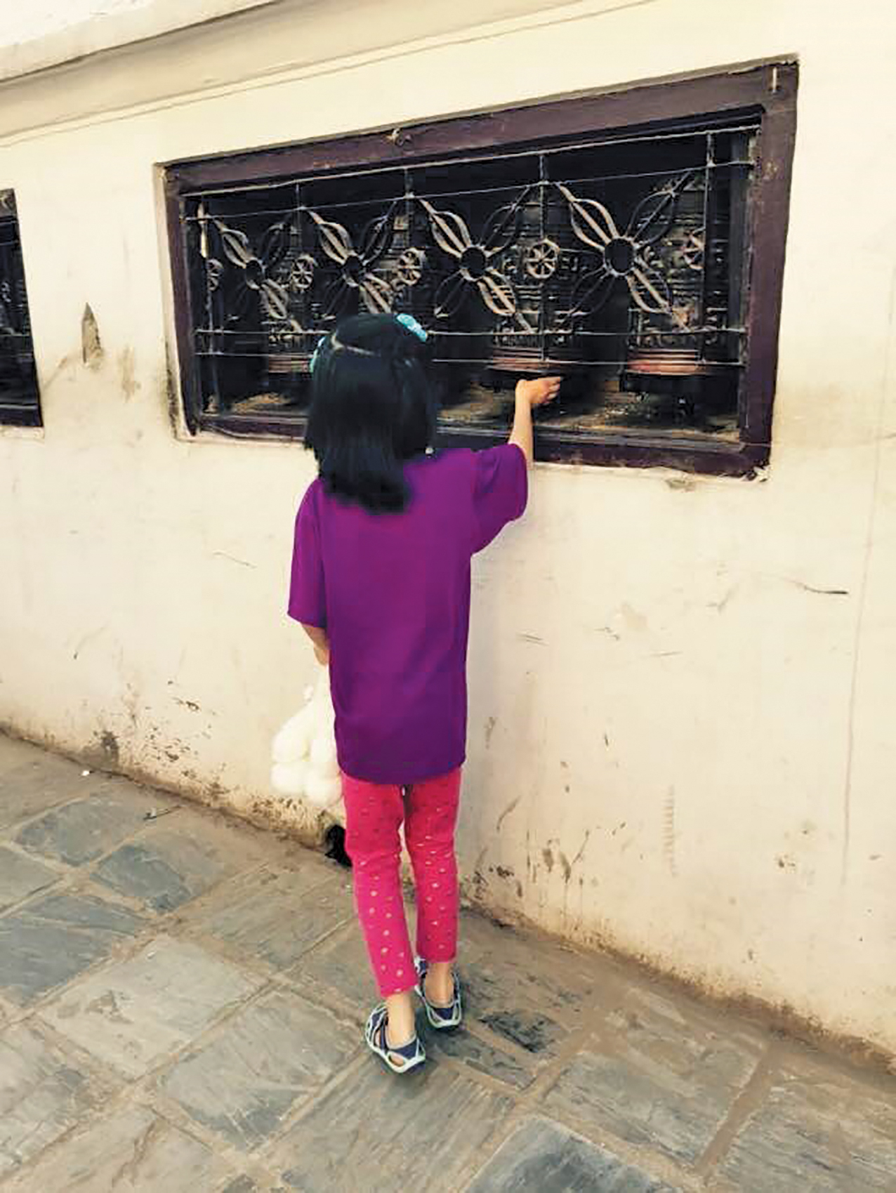 在此次尼泊尔之行的最后几日,家人和我也终于随着人潮,装模作样地绕行大佛塔。