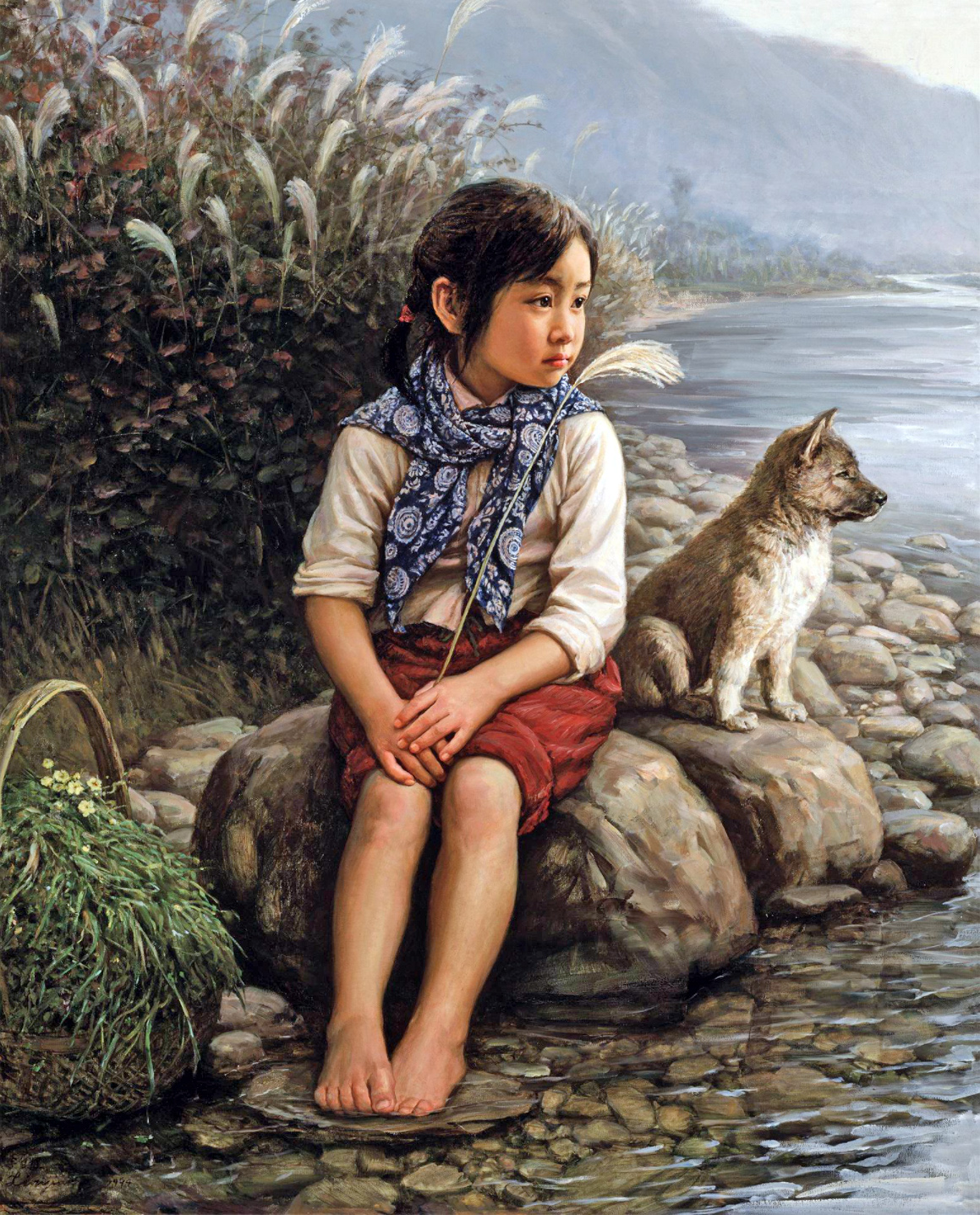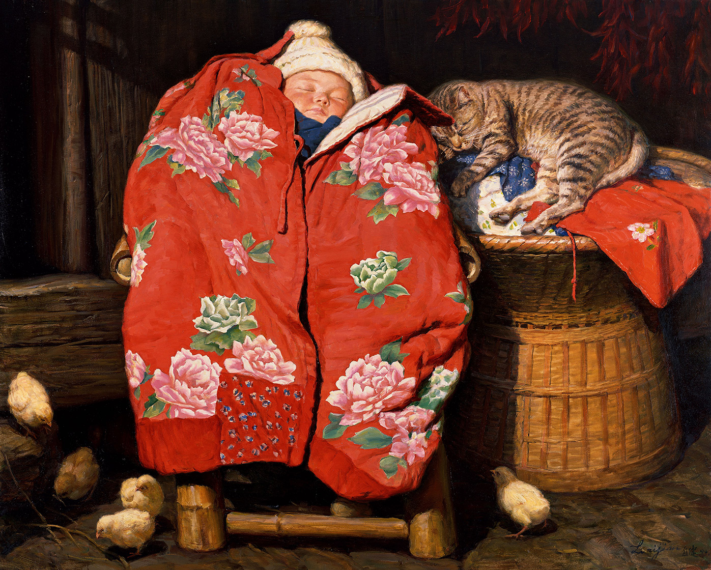 孩子们赤著一双污浊的脚,但睡的甜笑得活泼,身边的小猫小狗小鸡小羊,或打吨或偷懒或觅食或打滚,更添和睦安乐。