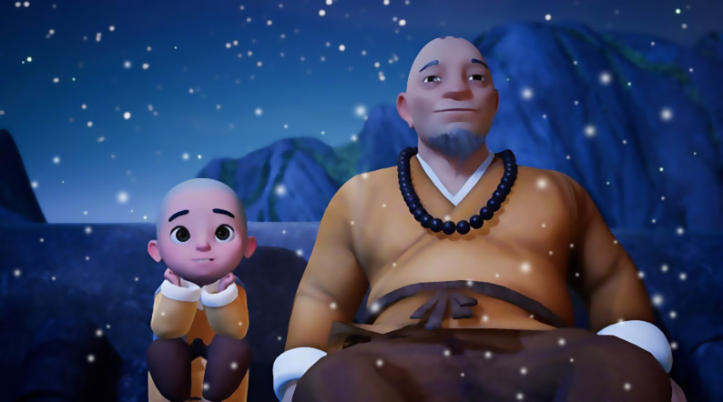 小和尚絮絮叨叨地说着,最后老和尚沉默一阵,终于睁开眼睛问道:“这北风吹得紧,外边又冰天雪地的,你冷不冷啊?”