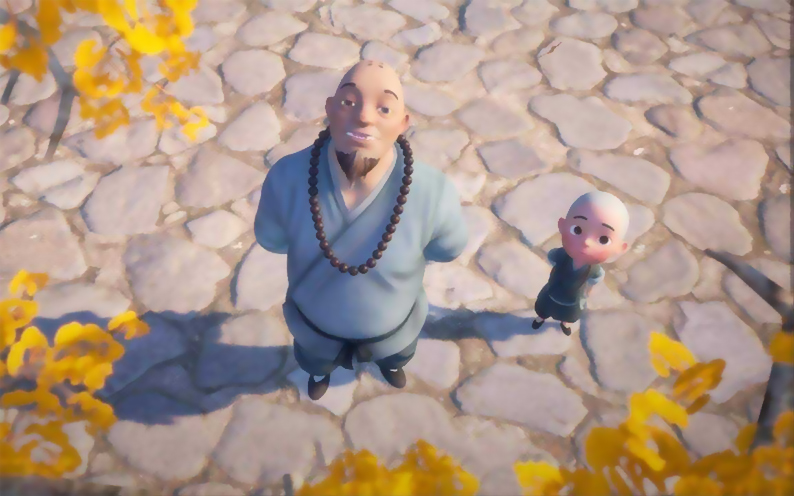 在一座破旧的庙宇里,一个小和尚沮丧地对老和尚说: