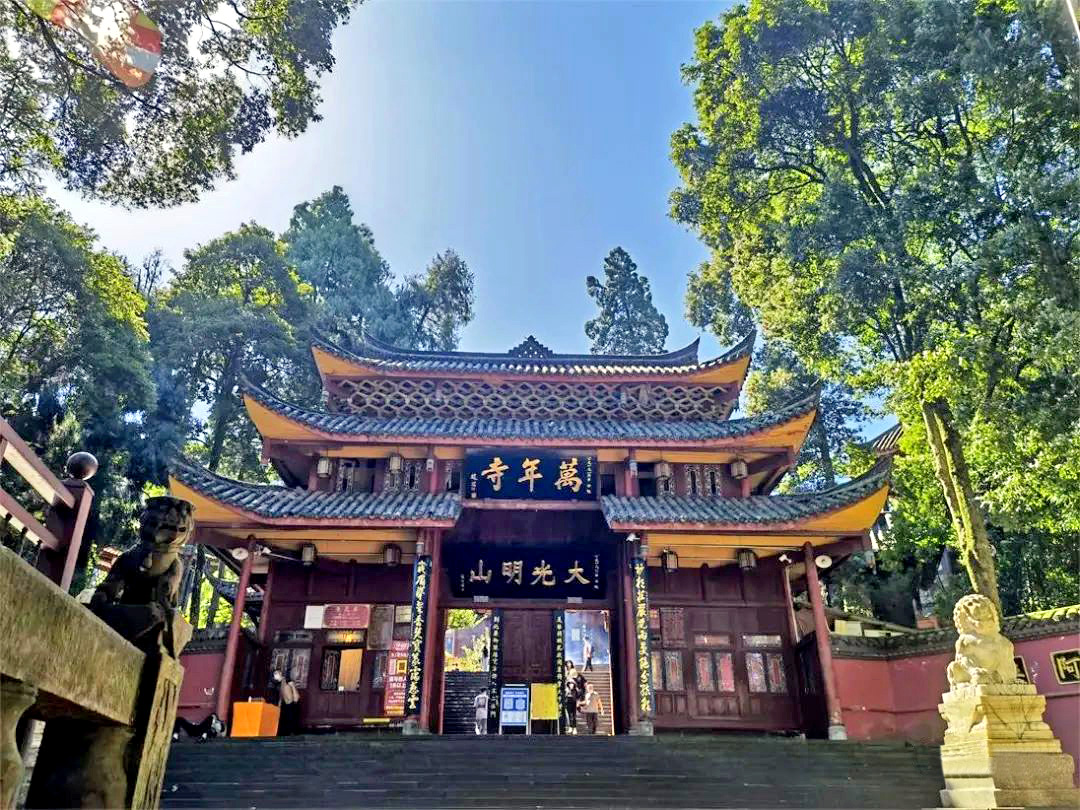 万年寺,位于峨眉山的半山腰上,独揽峨眉盛景,上可通于金顶胜境,下可达于清音阁,左右山形环绕,内藏本迹法要,是峨眉山八大寺庙之一。