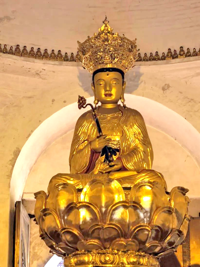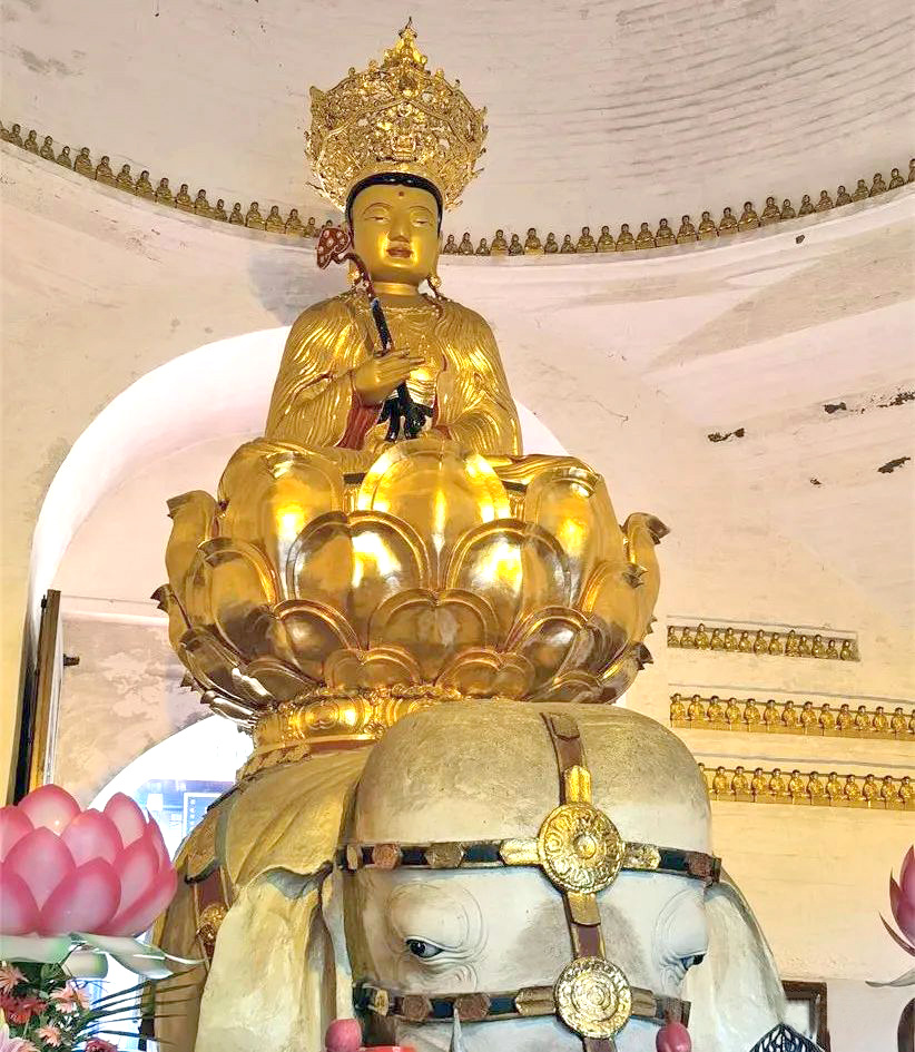 这里供奉的普贤菩萨铜像,是万年寺内最珍贵的一件文物,也是万年寺镇寺之宝。