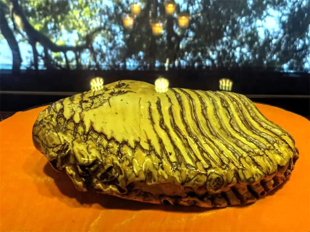 佛牙长1.28尺,重6.5公斤,光润如玉,据说是明代嘉靖年间古斯里兰卡人赠送的。但实际上经过考古专家研究发现,它其实并非释迦牟尼的牙齿,而是剑齿象的牙齿化石,到今天已经有20多万年的历史了。