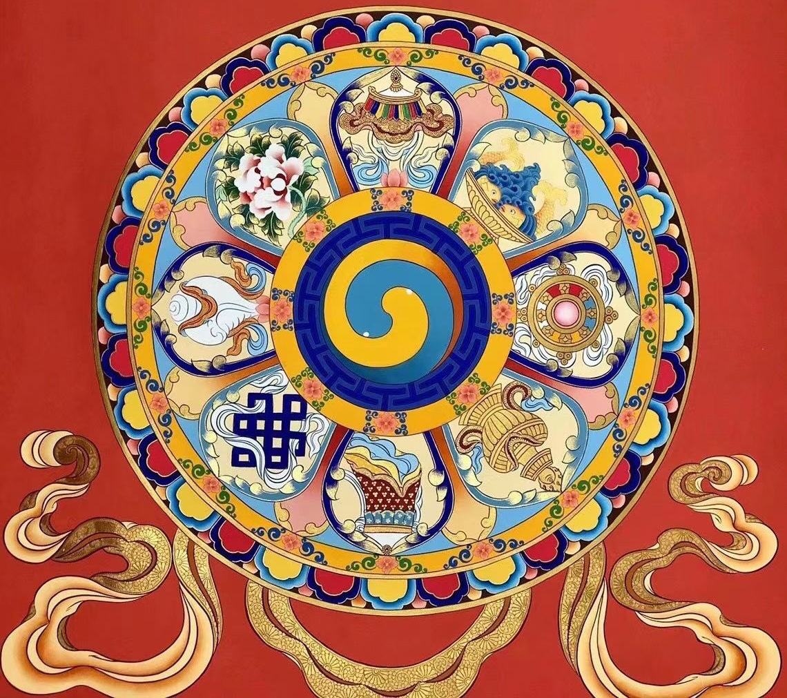 由此可见,「八吉祥」具有如此丰富的宗教内涵与精神意义,庄严、胜妙、尊贵、吉祥,是故为佛弟子者,在家中供养八吉祥,或献供于寺庙、道场,乃至致赠他人,均可带来幸福、喜乐、平安。以八吉祥供养佛菩萨,将得福慧增长、智能圆满。