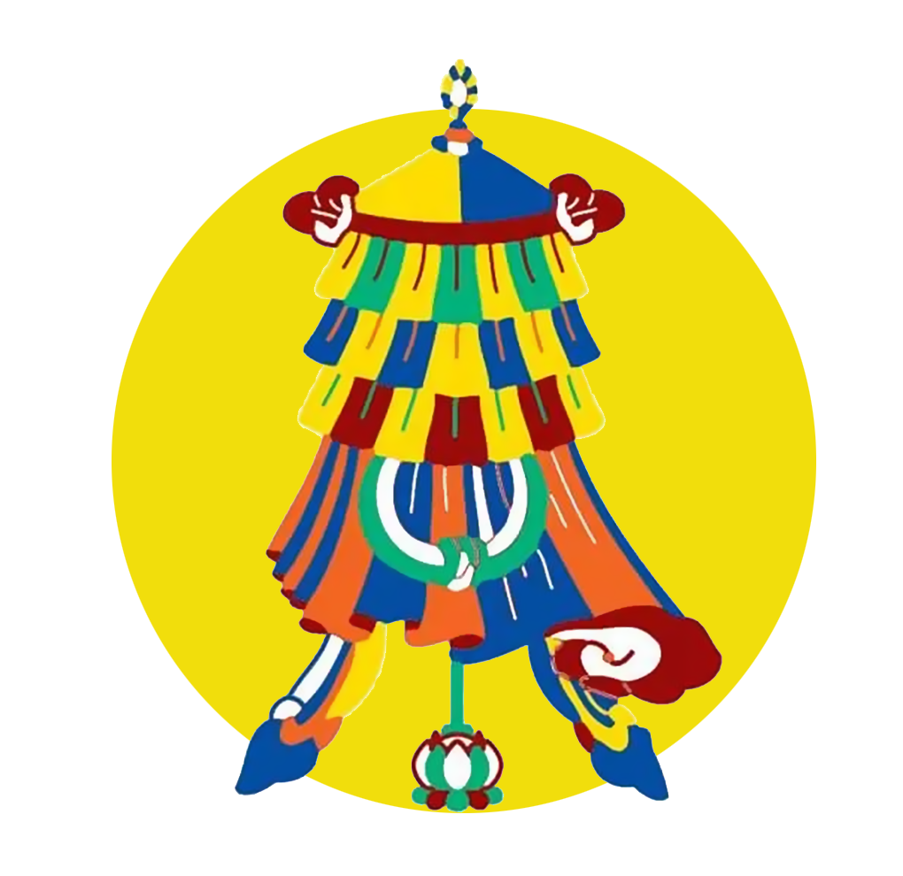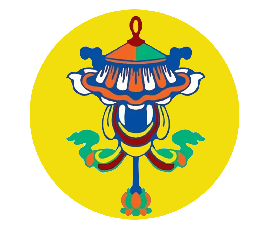 宝盖代表佛顶,象征佛陀教诲的权威;喻意佛法张弛自如,庇护有情。「伞」在古印度原是王室、贵族出行时之仪仗器具,被视作权势、地位的象征,后来被佛教采用,代表高尚、尊贵;佛陀、法王、上师的法座(或仪仗),顶上常有伞盖;伞盖能遮荫,使人免受烈阳炙热,宗教上则转化为遮蔽魔障,保护众生免受染垢之苦。供养宝盖,即是祈愿众生超凡入圣,离苦得乐。