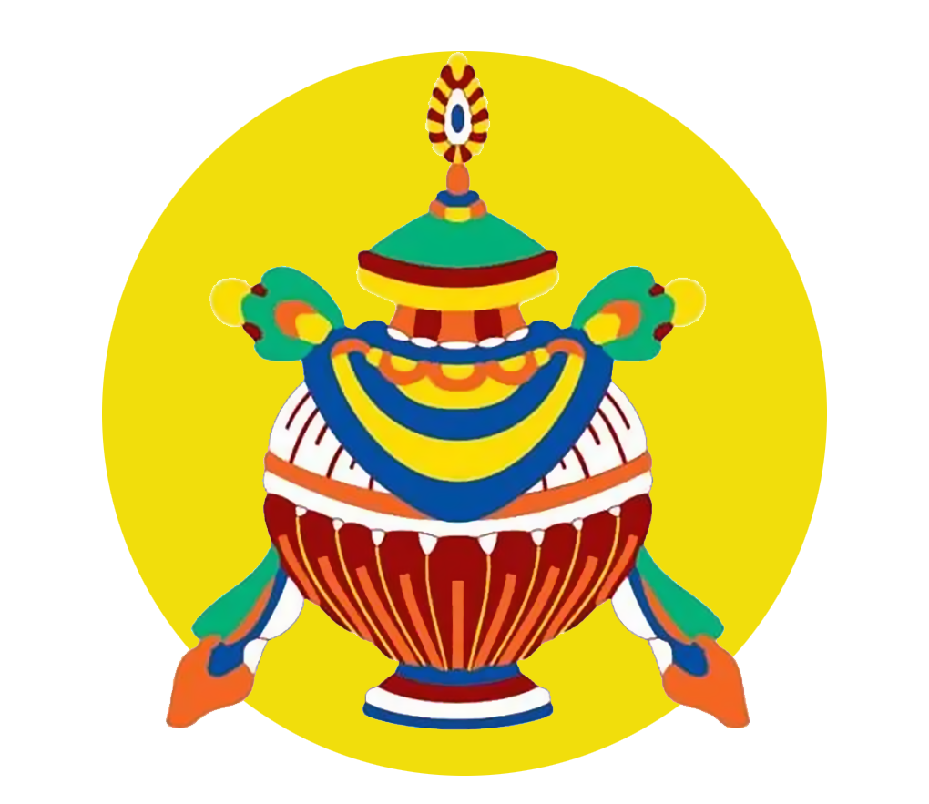 (宝瓶,又称贤瓶、德瓶、如意瓶、吉祥瓶、阏伽瓶。「瓶」原来是盛水容器,佛教将它作为吉祥物,内装宝石或圣水,表示佛法是一切众生能解脱苦海的甘露,瓶中插有孔雀或如意树,象征着吉祥清净和财运或福智圆满。是密宗佛法灌顶时的法器之一,是佛之善法的宝库,能满足众生的一切愿望。)