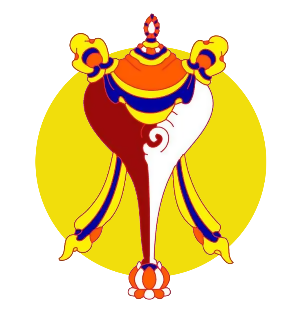右旋法螺代表佛陀三条颈纹,一说代表佛语。佛教中,以释尊说法,如海螺之音,声闻四方,广传天下利益众生,故法会之际常吹响海螺。在《大日经》中有云:「汝自于今日,转于救世轮,其音普周遍,吹无上法螺。」表示弘扬佛法,普渡众生。在西藏,以右旋白色海螺最为受尊崇,视作名声远扬三千世界之象征。供养法螺,祈愿众生远离爱憎怨亲之分别。
