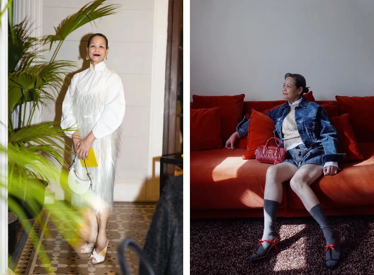 覃阿姨的穿搭单品,不少都来自儿子的衣橱