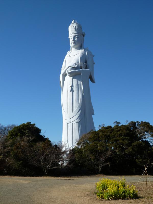 东京湾观音位于千叶县富津市的大坪山山顶,面向东京湾入口,高达56米,可把东京湾的迷人风光尽收眼底,由木材商人宇佐美政卫捐资,为了祈祷世界和平和追悼战殁者而于1961年建成的。东京湾观音建成后,一直静静守护着东京湾。天朗气清时,可以清楚地看到富士山。观音像内部的一条狭窄回旋楼梯会引领着你一路往上,一边爬还可以一边欣赏到各式佛像。