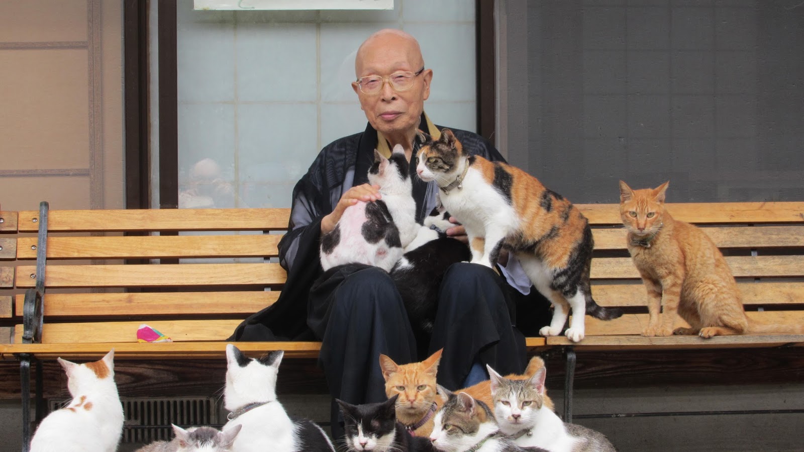 慈心仁厚的方丈板桥禅师,不忍心看到这些流浪猫受苦受难,便通通将它们收留在寺庙里。