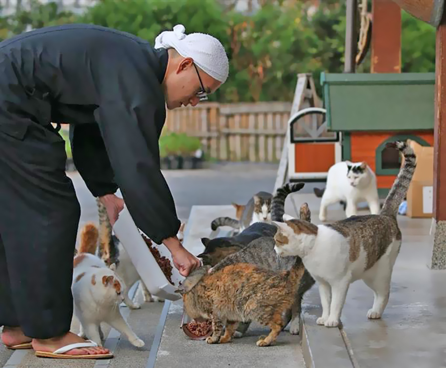 猫与寺僧,自古良伴。