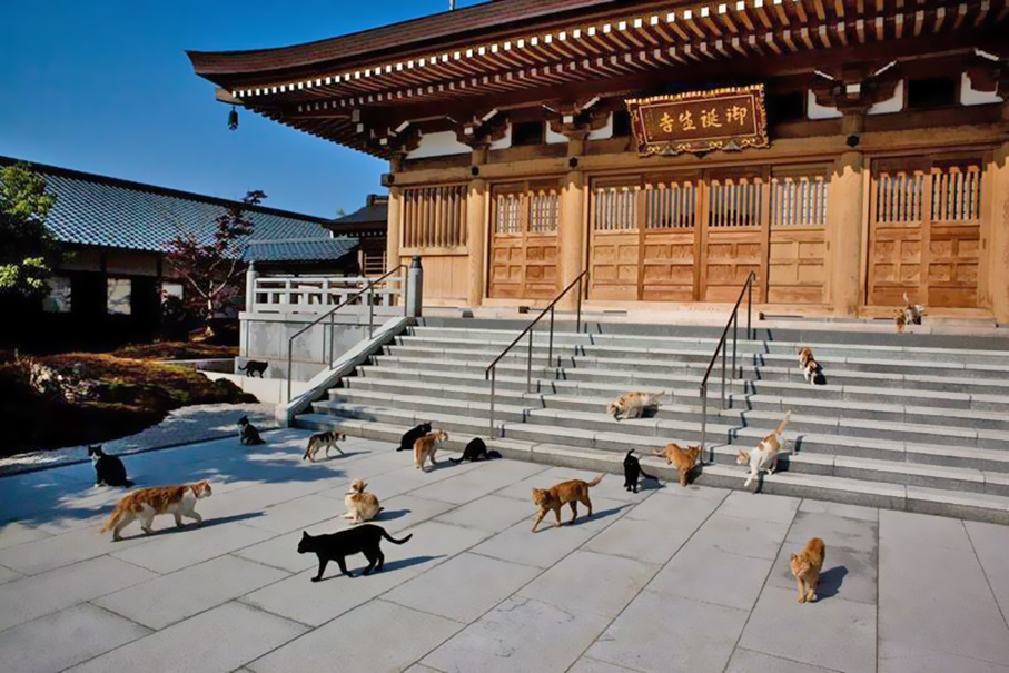 这座寺庙,虽是一座佛教寺庙,但住在里面最多的并非是僧人,而是猫。