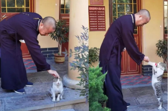 而方丈与猫之间,也已然成为了密不可分的亲密关系,撸猫也成为了他的日常爱好。
