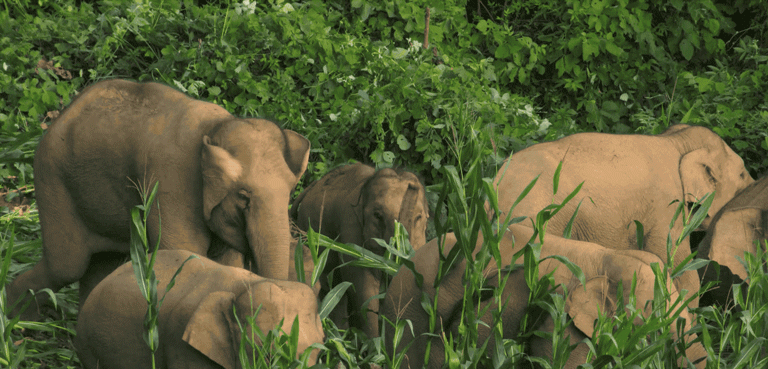 ▲ 回到西双版纳后,短鼻家族和其他象群在一起