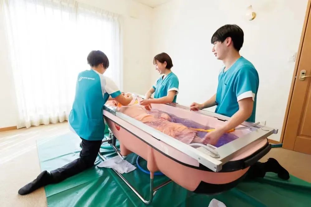这一整套流程也基本参考了日本。日本的助浴行业遵循一套完整的法律——《介护法》。服务人员必须持证上岗,为老人服务有很多细节要讲究。但中国没什么案例和经验,我们在学习、培训的时候也费了很大功夫。