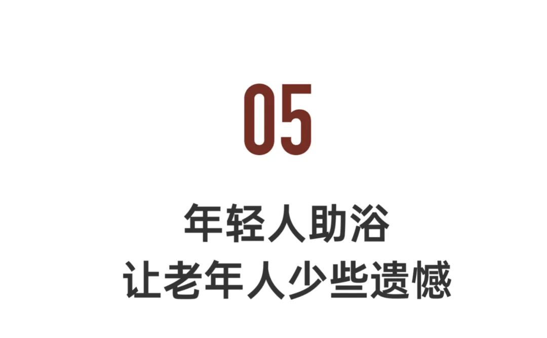 此外,澡盆里的水位也不会高过老人的心脏,水压可能会挤压老人的心脏,会很不舒服。这些都是我们要处处注意的细节。