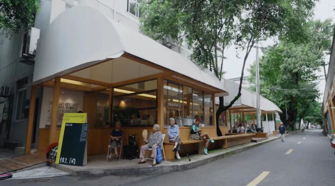 ▲ 成都的社区营造,老人在社区咖啡馆前休息