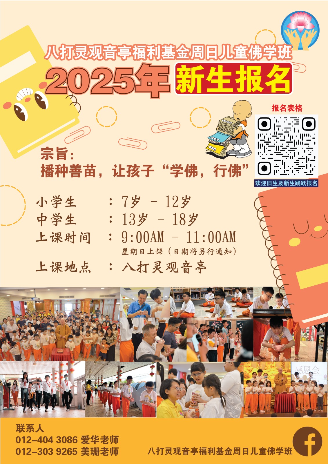 八打灵观音亭福利基金周日儿童佛学班近期招收2025年新生。