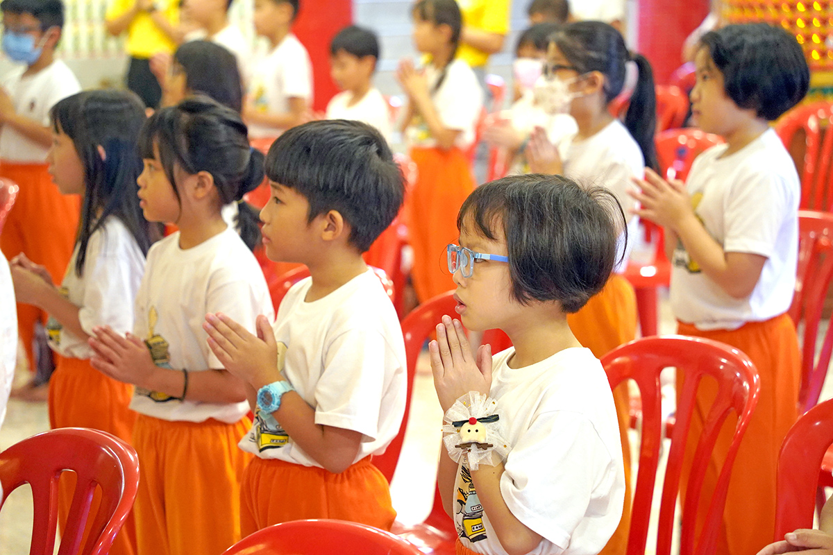 八打灵观音亭周日儿童佛学班开办至今已迈入三十个年头!凭着播种善苗的理念,让孩子学佛、行佛,也让孩子对三宝有正确的认识和理解,从而建立正确的价值观并启发他们把佛法应用于日常生活中。除了佛学课程,也有办一些团康活动,让学生在温馨与欢乐的环境中学习佛法。