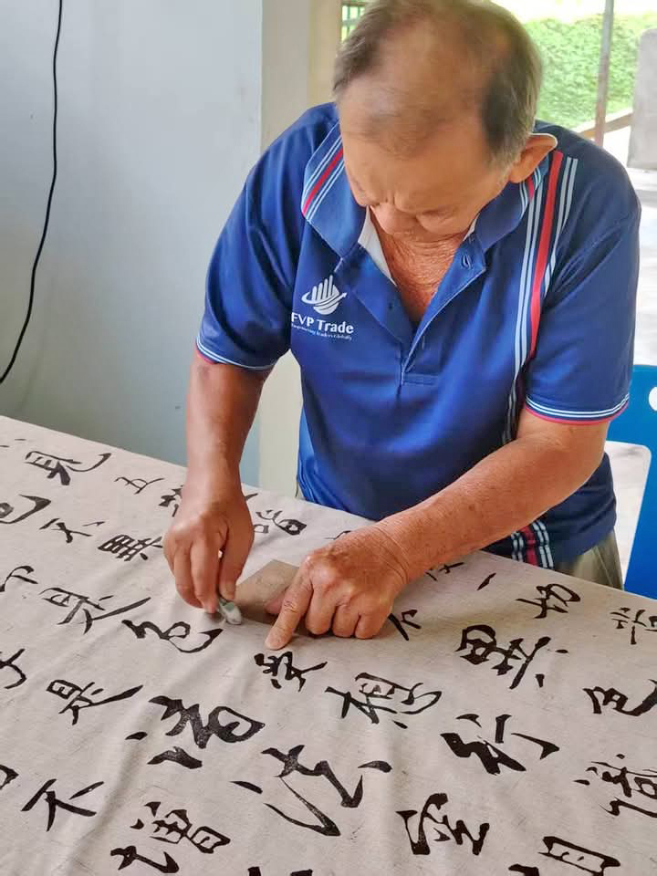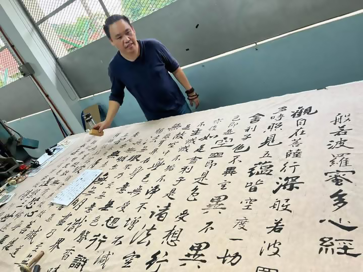 现场除了展出大型《心经》(10尺×4尺)刻印版画,还有9位麻疯病康复院民创作的艺术作品与粉彩画作。他们曾饱受病苦,却勇于超越自身的极限,以温润的色彩与诚挚的手艺,展现对生命和佛法的体悟。