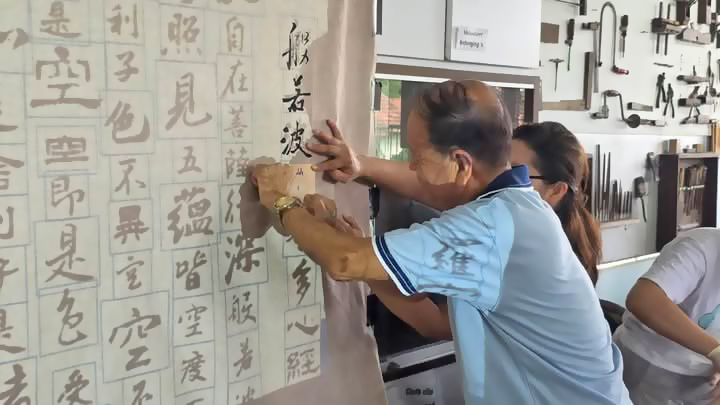 天法法师指出,刻印心经的过程,是对抗焦虑的修练。每一次在木板上刻下一刀,皆能学习放下、学会不执着。