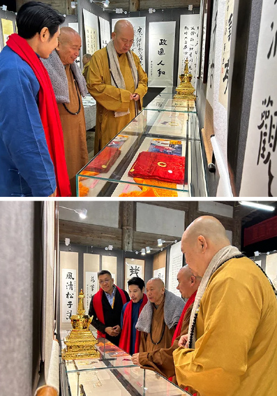 开幕礼来到进行重点环节:“伯圆长老书画作品及文物遗珍”捐赠仪式,伯圆长老入室弟子、马来西亚当代艺术家、文化学人刘庆伦居士将伯老书画作品及文物遗珍捐赠与福安佛教协会与祖庭狮峰寺,为推动中外佛教艺术文化交流,传承和弘扬中华优秀传统文化作出重大贡献。