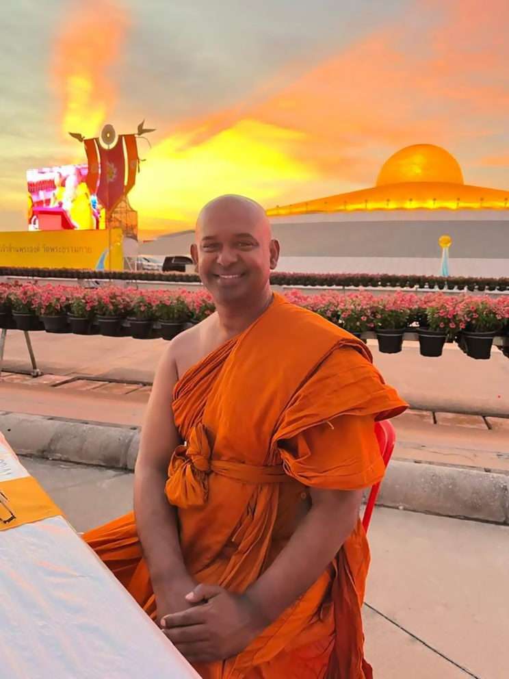 天崧师父是大马印裔僧人,在台湾学习中文,于美国及印度接受教育,拥有人类学学士、瑜伽佛学博士学位。目前担任台湾高雄金山寺的监院。师父慈悲心深重,虽忙于法务与大学教学,仍于百忙中接受《慈悲》杂志的电话访问。