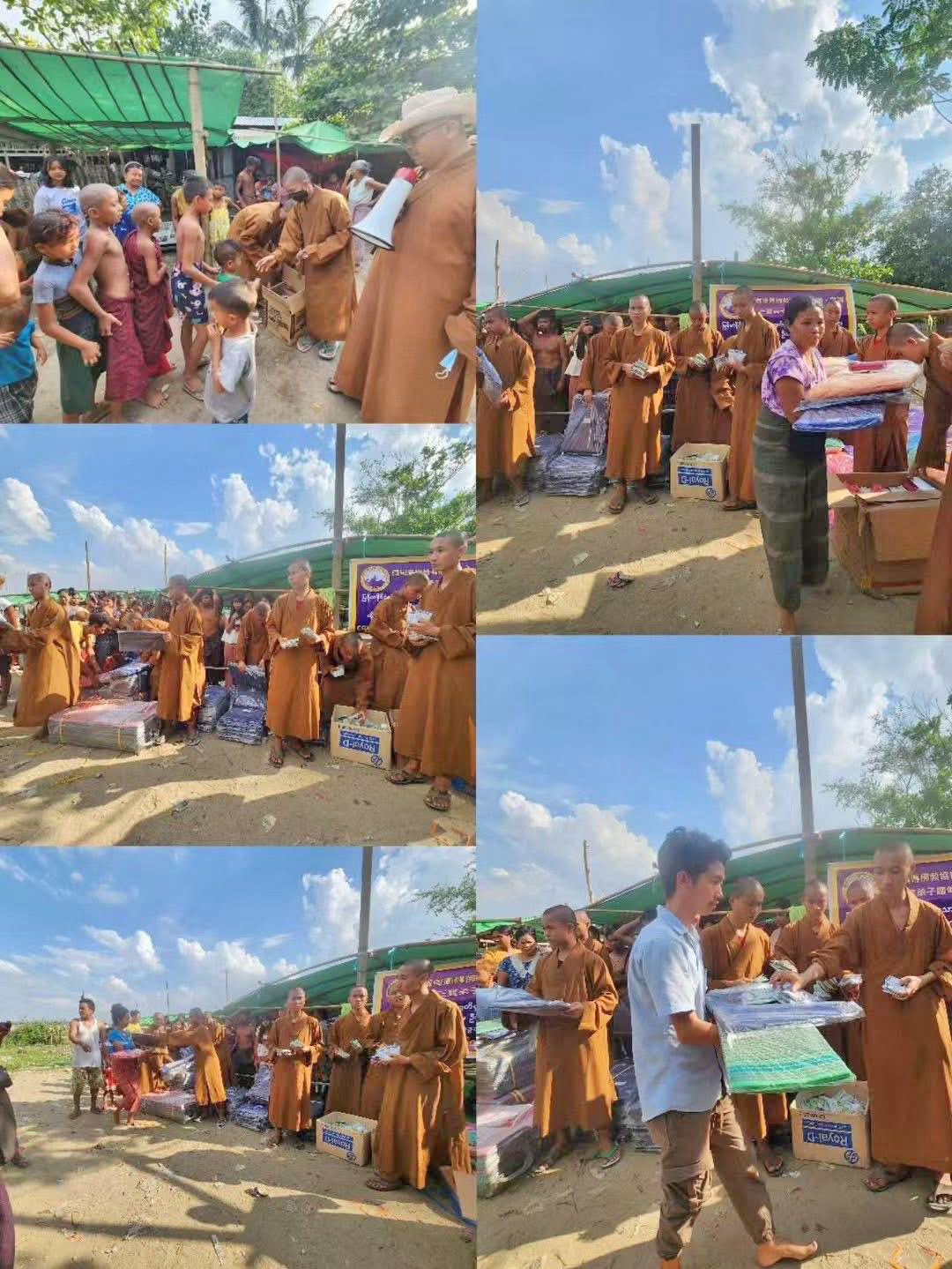 师父:“灾难突如其来。师父非常赞叹世界各地许多国家与团体的即时援助。师父在美国念书时,认识一位从如法师,透过他在缅甸的师兄从法法师,迅速展开支援。从法法师是缅甸仰光达本禅寺的住持,该寺法师们非常慈悲,第一时间便将物资送至灾区。”