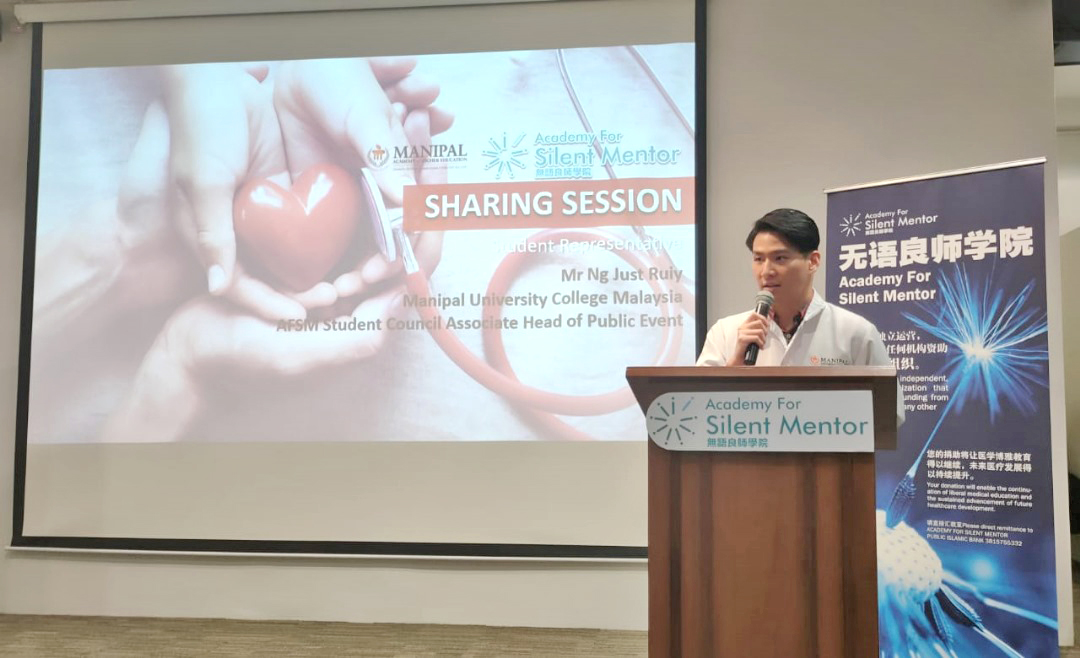 医学院学生代表也上台分享要获得大体解剖实属不易,因此感谢陈炳南老师愿意捐赠大体的遗愿,以供医学院学生学习。他表示陈炳南老师生前是老师,死后也是“老师”,生前死后都扮演了老师的角色。