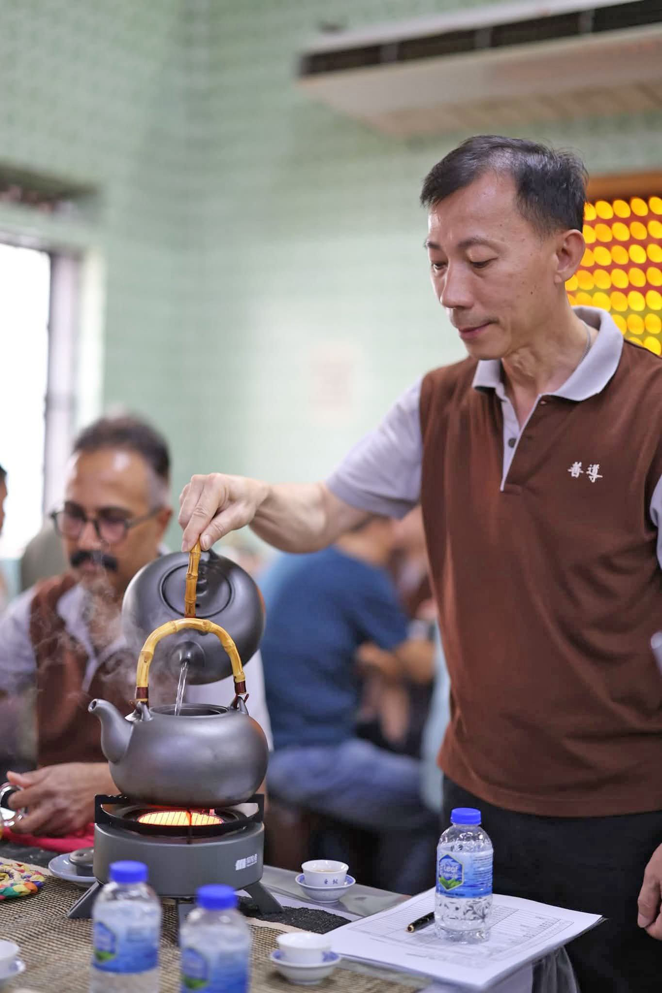 茶人詹朝枝于席间用心分享茶友的提问。他懂茶,也懂法。
