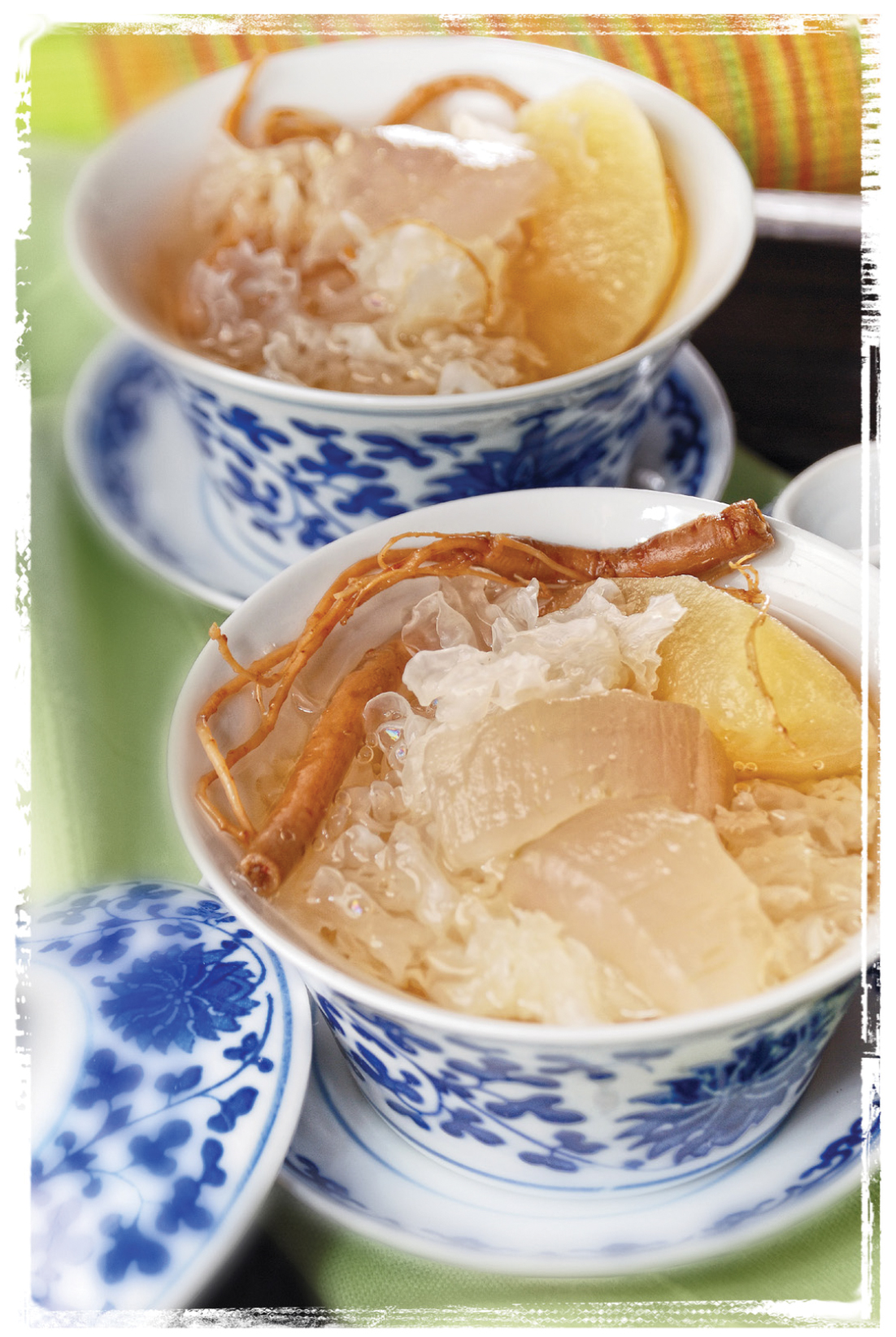 2. Bring ingredient (A) 800 ml water to a boil, then add in white fungus and Ginseng root to boil for 20 mins over low heat.
