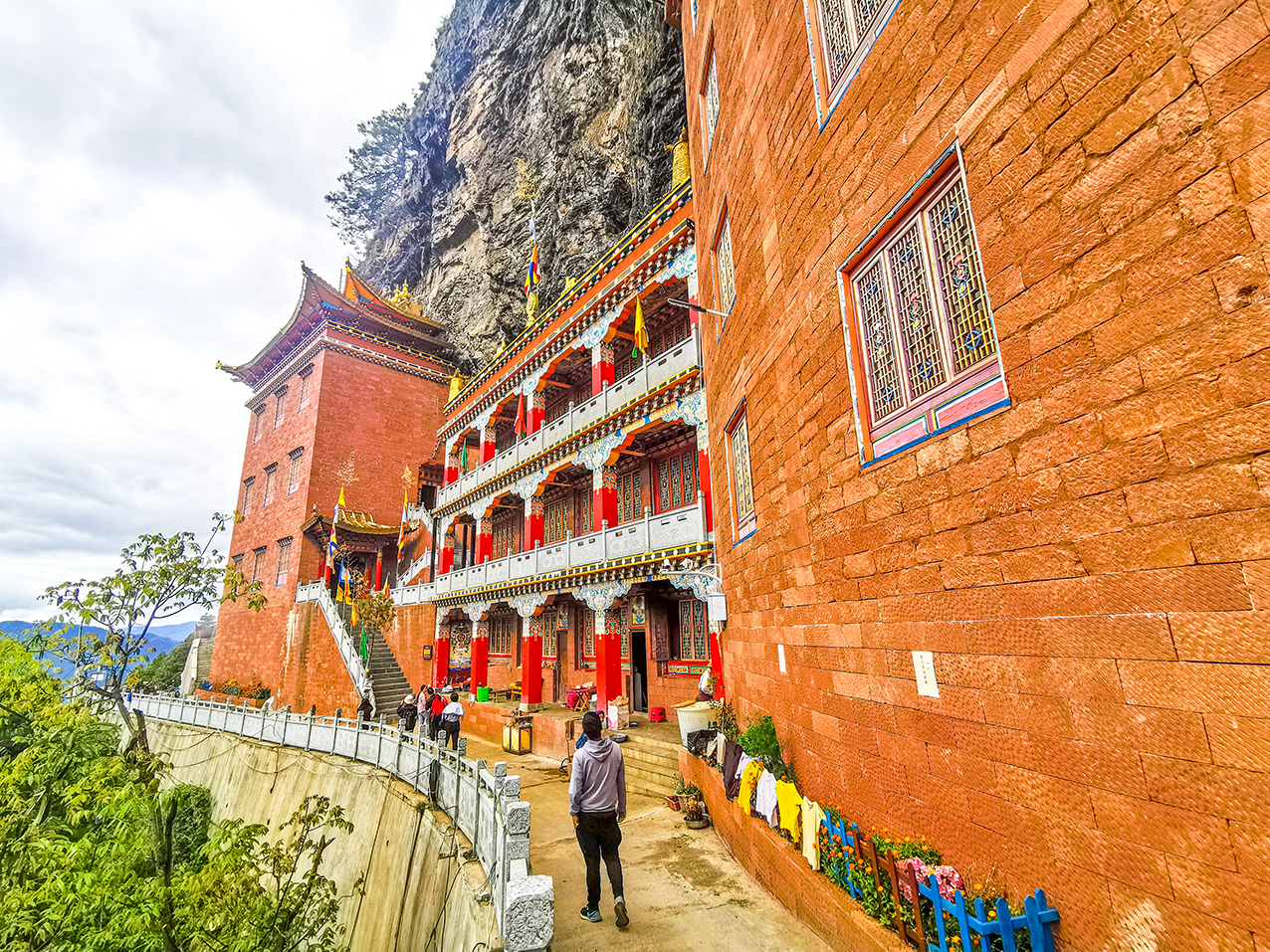 寺院依壁叠木,依洞造型,凿石架木而成,形成石洞与僧房互为一体的奇特景观。与山下分列左右的来远寺和达摩寺遥遥相望,成三足鼎立、互为倚角之势,成为远近闻名的佛教圣地。