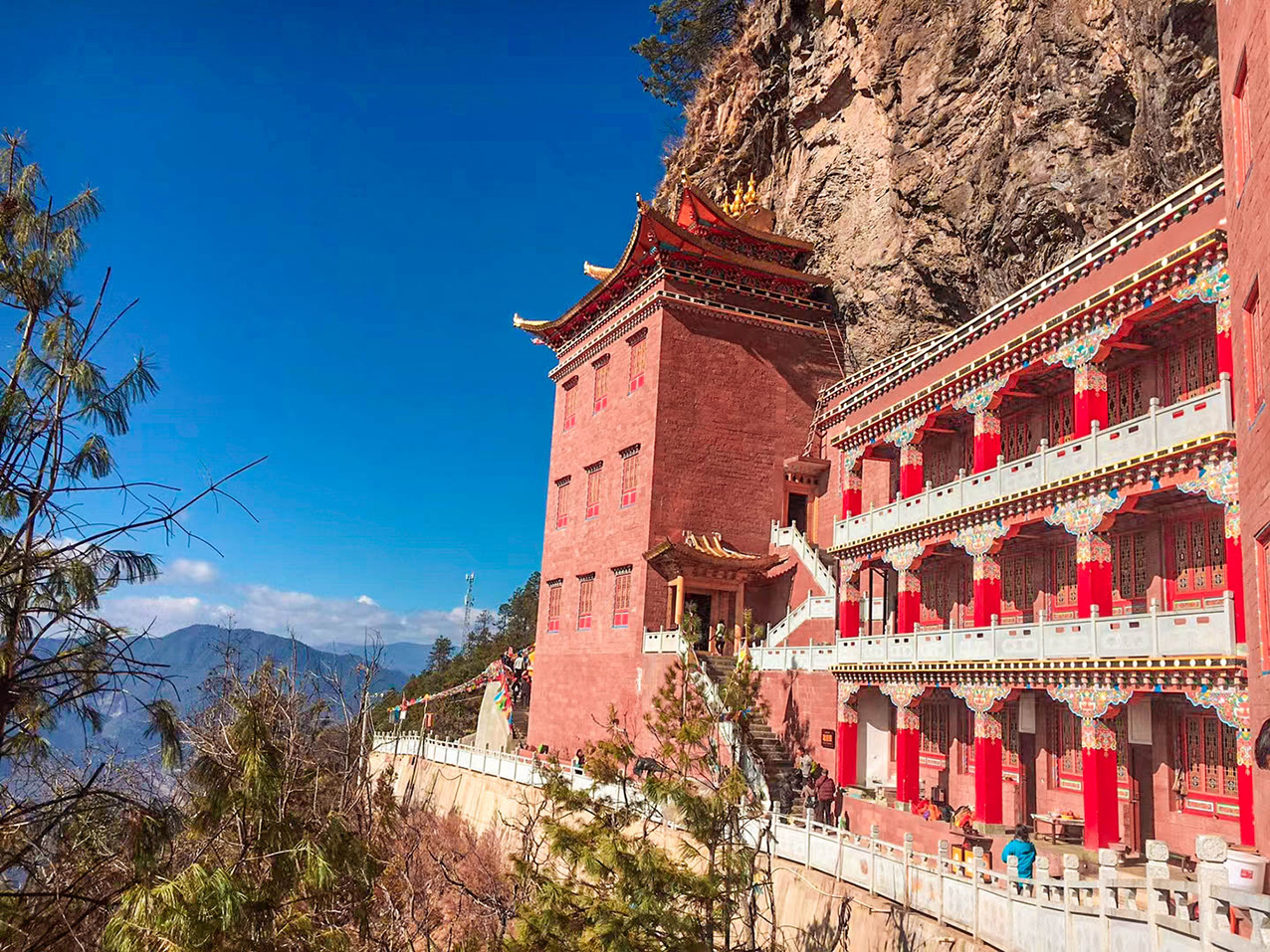 达摩寺属噶举派寺院,建于清康熙元年(1662年)。寺院建在海拔3000米的悬崖峭壁上。相传达摩祖师曾云游到此,在此山洞内面壁十年而得道成佛。