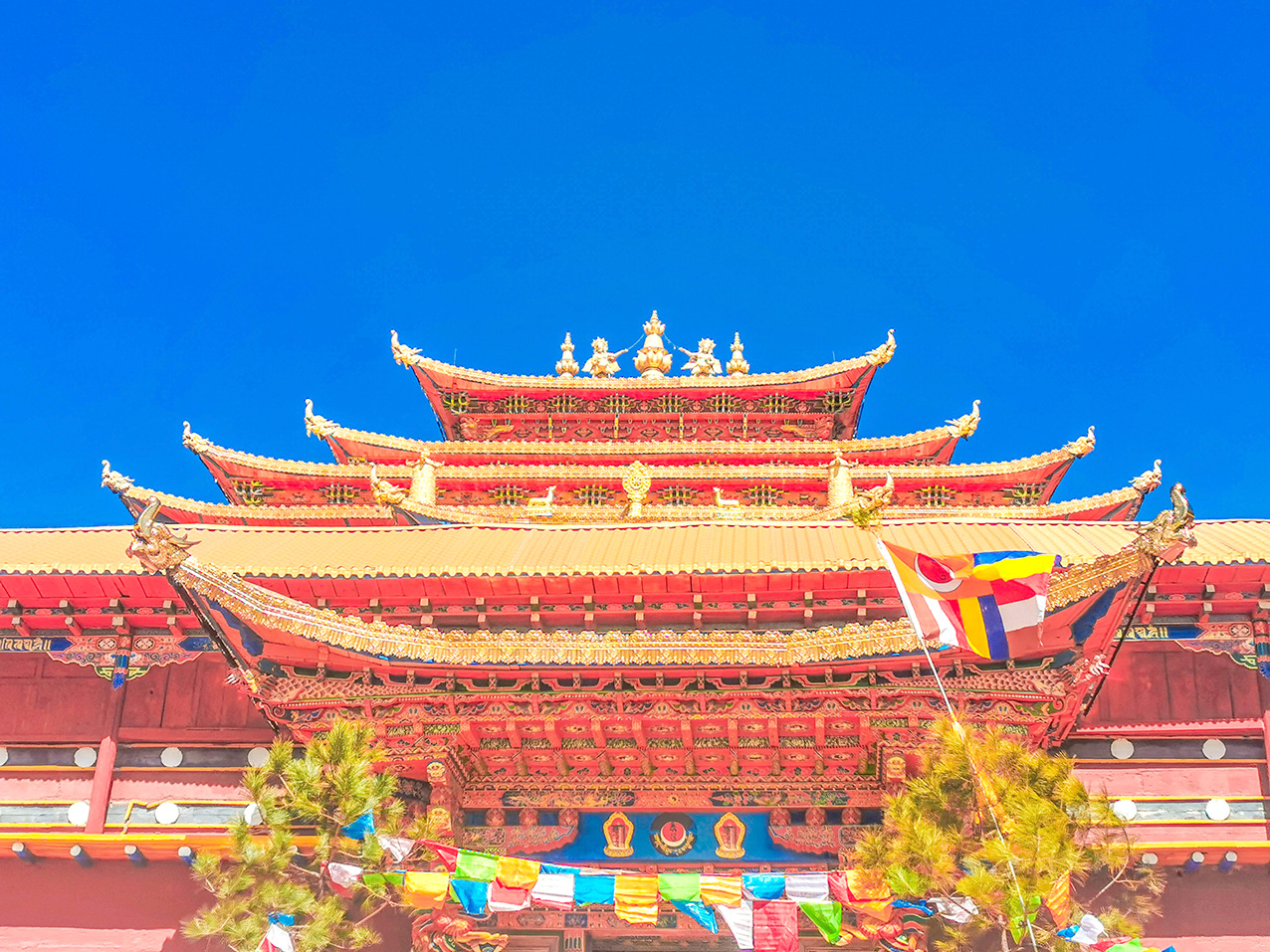 1984年后将山下原属止贡噶举派的来远寺以及原属噶玛噶举派的达摩寺两寺的僧侣合并于此活动。其大经堂中供奉释迦牟尼、莲花生祖师、格鲁派创始人宗喀巴以及止贡噶玛噶举两派祖师的造像。有僧侣近80人。