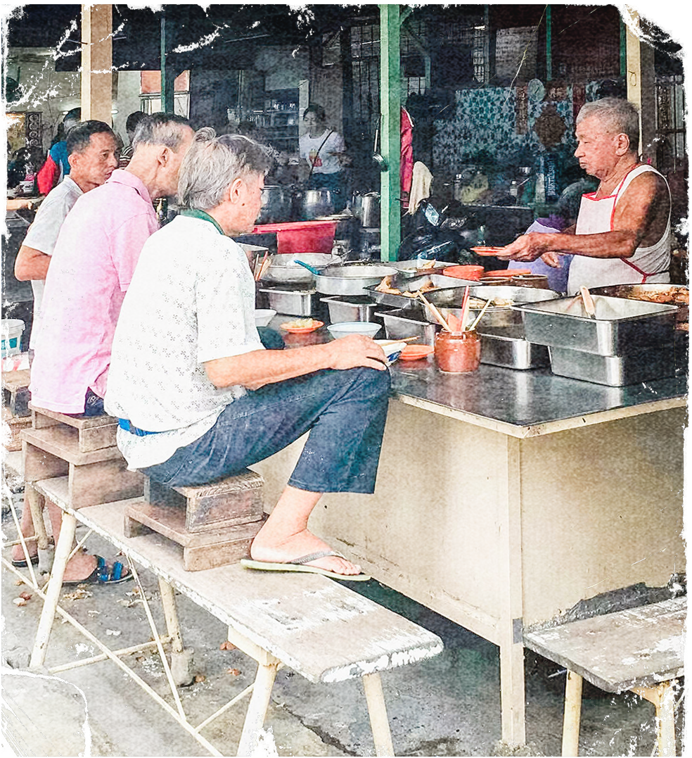 话说,这个梦潛意识里,提醒著我多年來対老字号小档口的惦念,皆因每次回到槟城路经此地,都有坐下來吃碗粥的冲动,唯每次都因要跨上那长长的木椅,再坐上双层叠著的木凳子,心有障礙加上恐惧感,担心会不慎跌下來。