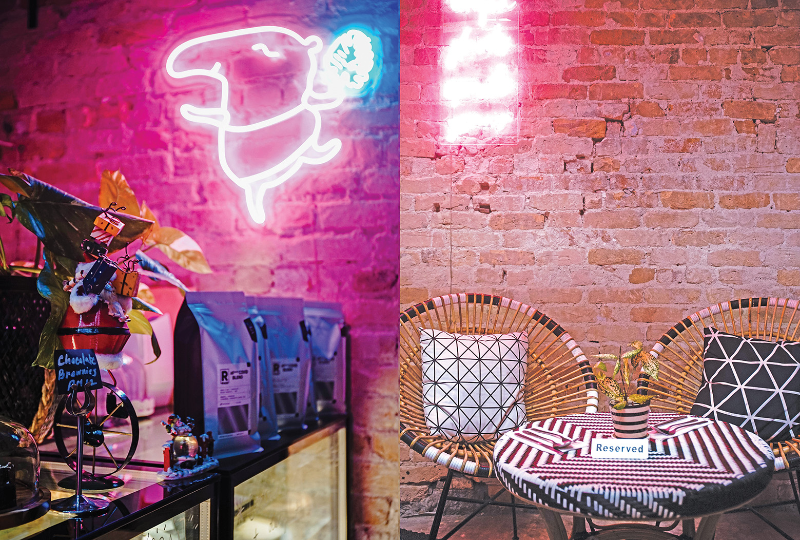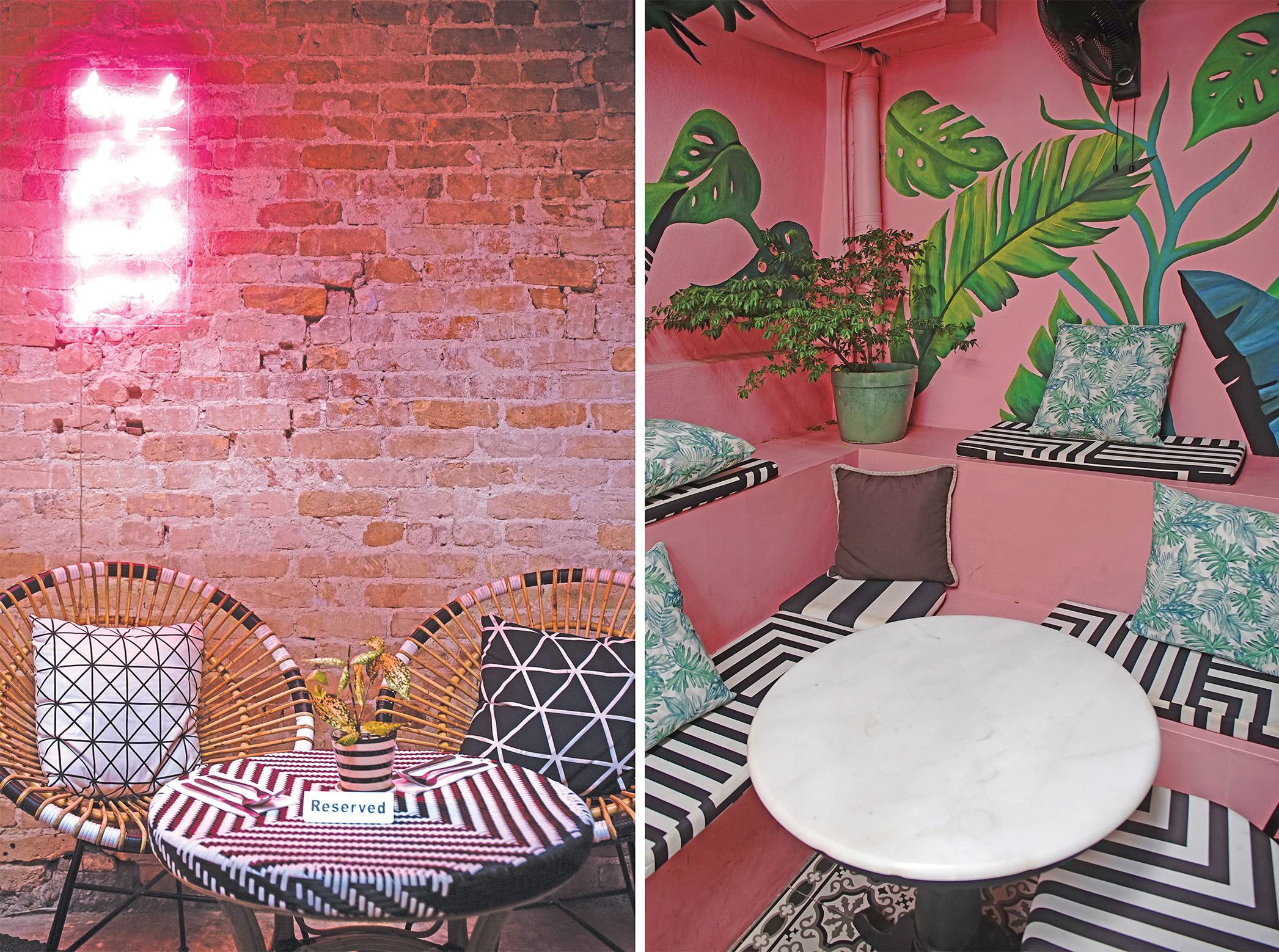 Markissa (玛琪莎) 以一口很重英式腔调的英语分享道 : "我和我母亲特别喜欢黑色和白色, 我们的衣柜里都是黑白色系的服装居多。所以我们也用了这两种颜色做为餐厅的主色。另外再配上耀眼的粉红色和其它的色彩, 带出强烈的对比和美感。"