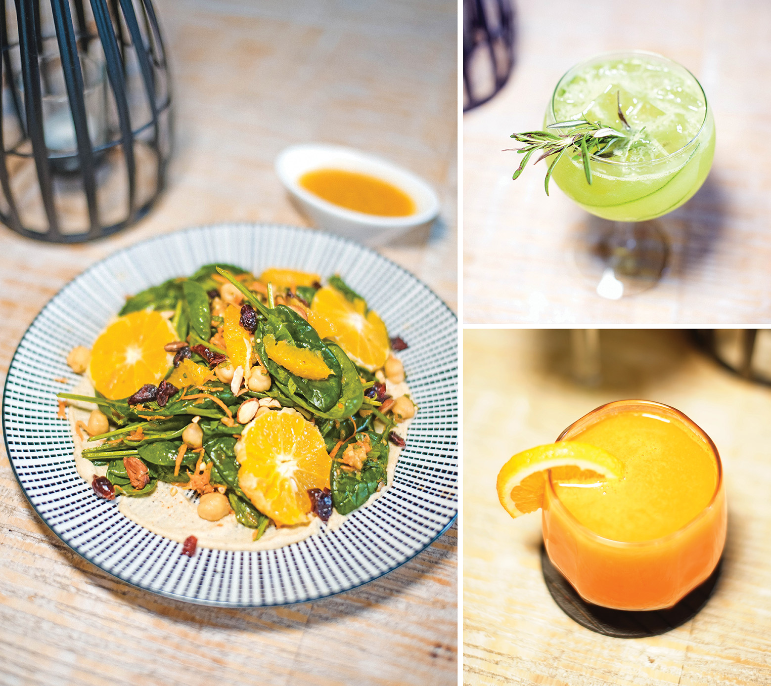 如果你想要瘦身的话, 你可以选择一客低卡的芝麻菜沙拉。特调的沙拉酱用了橘子汁, 柠檬和椰糖等自然材料, 吃起来清爽开胃, 不像普遍用的蛋黄酱或千岛酱的腻感, 超有创意, 绝对是一大突破。