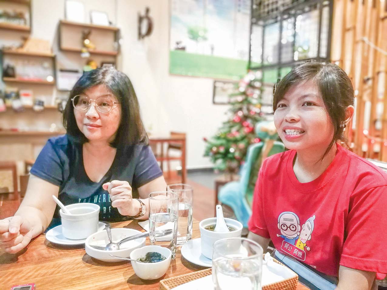 “正向生命教育中心”的临床心理治疗师、教练姚玉珠及店长杨玮欣热诚招待我们,并用心解读“旅人”推广的自然饮食顺序:先从喝酵素喝汤开始,然后生菜、凉拌菜、叶菜瓜类、蛋白质最后才吃淀粉类。